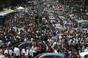 Sin duda una de las imágenes más impactantes que se han registrado tras el intenso temblor es la de centenares de personas evacuadas en la Avenida Reforma de la capital mexicana.