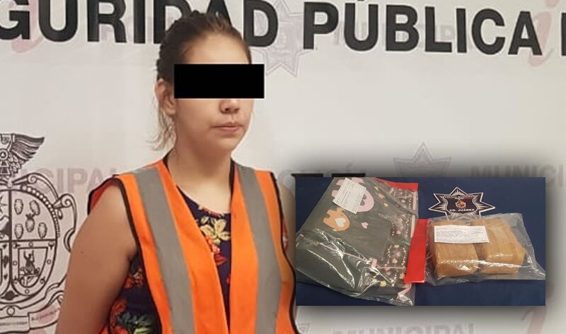 Agentes de Seguridad Pública Municipal en cd. Juárez realizaron el arresto de Luisa Jazmín B. S., por su presunta responsabilidad en la comisión de delitos contra la salud, al asegurarle dos libras de marihuana.